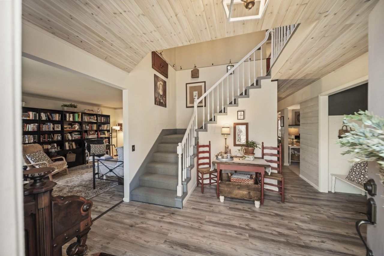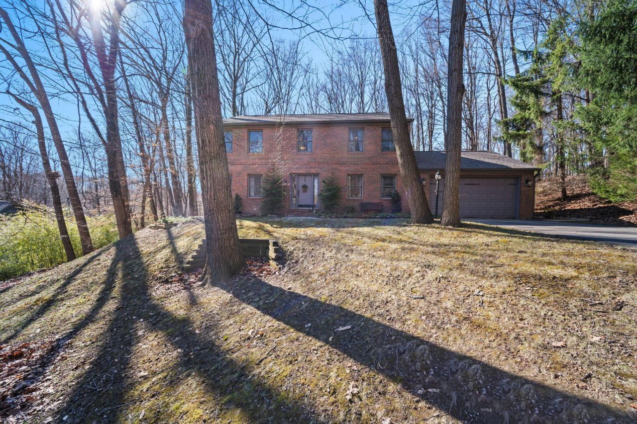 Private hilltop setting in Stratford Woods- where homes rarely come on the market. This brick Colonial sits on nearly þ acre with mature trees and no HOA fees. Extensive updates throughout the home. New roof, gutters, and skylight (2025). Complete kitchen remodel featuring KitchenAid appliances, quartz countertops, custom island and opened the wall for improved layout. Luxury vinyl plank flooring throughout.All bathrooms updated with new sinks, fixtures, luxury vinyl tile and plank flooring. Interior improvements include new lighting inside and out, added wood texture and molding details, fresh paint throughout (including doors, railings, and trim), and new hardware on all interior and exterior doors.Additional updates include new garage door opener and freshly painted garage door with new hardware. Private outdoor living with paver walkway, patio, and re-stained two-tier deck. Furnace and A/C approximately 5 years old. Home also includes a radon mitigation system.Located near bike and walking trails! Enjoy the privacy of a wooded setting while remaining close to Granville and OSU Newark.