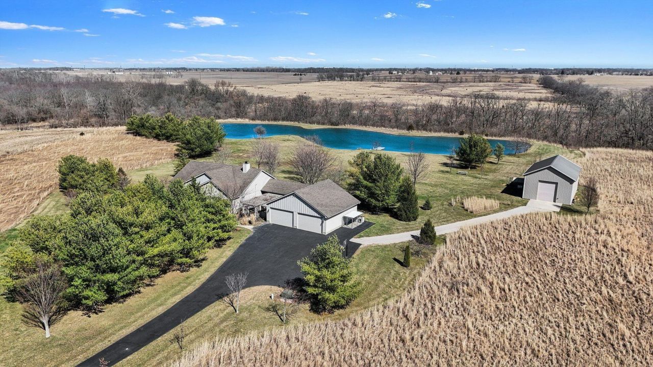 Gorgeous private estate with 4+ car insulated garage and large pole barn. Open floor plan with abundant natural light and stunning views. Spacious kitchen with cherry cabinets, granite, oven/microwave, hardwoods and a view overlooking the private backyard. Convenient back hallway with half bath and oversized laundry/pantry room. Primary suite with large bath including a separate bathtub and shower, 2 sink vanity, linen cabinet and private water closet with toilet and bidet. Three additional large bedrooms. Open stairwell to nicely finished rec room/family room in the lower level with a row of sill height windows providing good natural light. Lower level office/den (could be unofficial 5th bedroom) and full bath. Geothermal heat! 30' x 48' pole barn with cement floor, water, electric (strong enough to charge an electric car) and power lift to loft. The box is wired to flip power to the house with use of the included generator. Also included is a chicken coop (chickens can stay), 2 acre stocked pond, a variety of producing fruit trees (apple, pear, peach), and a patch of mature blackberries. The CAUV sections provide a yearly income. Truly a special property! PLEASE, DO NOT DRIVE UP THE DRIVEWAY WITHOUT AN APPOINTMENT!