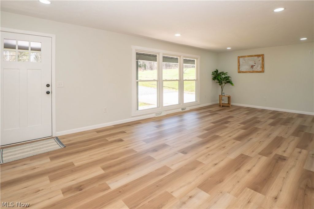 Welcome home to this beautifully updated split-level on 1.38 acres in Canton Township, offering space, style, and a scenic backyard setting. Step onto the covered front porch and into the main level, where the bright living room features new flooring and a seamless open flow into the eat-in kitchen. The kitchen is designed for both everyday living and entertaining with stainless steel appliances, an island with cooktop and oven, breakfast bar seating, and sliding doors leading to the back deck?perfect for enjoying the peaceful wooded views. Upstairs, you'll find three comfortable bedrooms and a remodeled full bath complete with dual vanities, built-in shelving, and a beautiful tile-surround tub/shower combination. The lower level adds even more living space with a spacious family room that walks out to the patio, along with a fourth bedroom and a full bath with a standing shower. The basement level continues to impress with a large rec room, laundry hookups, and a storage area, giving you plenty of room for hobbies, entertaining, or everyday organization. Outside, the property offers a spacious backyard, scenic wooded backdrop, gravel driveway with turnaround, and an attached 2-car garage. A great opportunity to enjoy updated living with room to spread out inside and out!