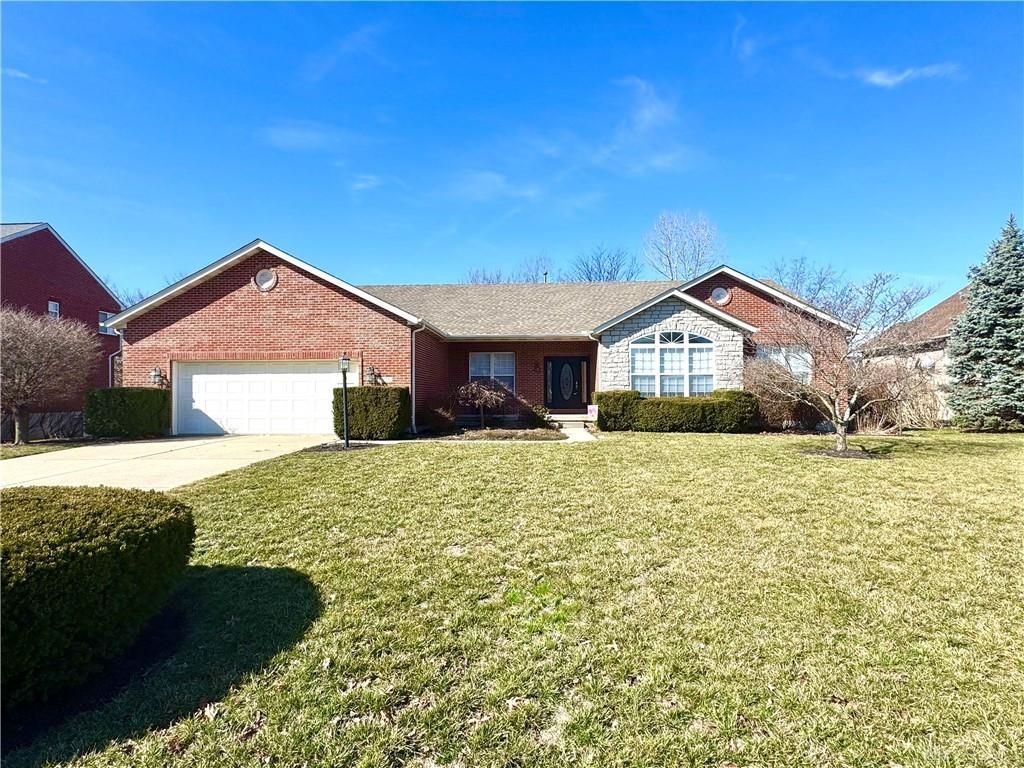 Welcome home to this spacious open ranch with thoughtful details throughout. The dramatic cathedral ceilings in both the entry and family room create an open, airy feel, anchored by a stunning stone fireplace that serves as the heart of the home.The kitchen features rich cherry cabinetry, granite countertops, a convenient built-in desk workspace, and easy access to the bright solarium. Step from the solarium onto the deck overlooking a peaceful, tree-lined lot ? perfect for morning coffee or evening relaxation.The large primary suite boasts a cathedral ceiling, adjoining bath, and generous his-and-hers walk-in closets. Each additional bedroom also offers its own walk-in closet, providing exceptional storage space throughout the home. Newer carpet enhances the main living areas, adding warmth and comfort.Additional highlights include first-floor laundry, handicap accessibility via a ramp from the garage, and a full bath rough-in in the unfinished lower level ? ready for your finishing touches. The garage also provides direct stair access to the basement for added convenience.This home combines functionality, space, and comfort in a beautiful setting ? ready for its next owner to enjoy.
