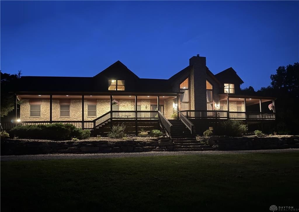 Truly stunning, one of a kind 19+ acre property includes an impressive 5,989 square foot home (Including the walk-out basement), amazing views, creeks, excellent hunting, barns, and is perfect for homesteading. Very private while still being walking distance to downtown Waynesville. Close to Caesar Creek Lake too! The home has gorgeous woodwork, huge bedrooms, and tons of storage. New roof and gutters in 2021. Includes 5 bedrooms, plus a huge bonus room and loft, 4 full baths and 2 half baths. Primary suite located on main floor. The full walk-out basement includes a second full kitchen as well as a separate entrance from the garage, and walks out to one of several spacious patios. Enclosed back porch off the kitchen is perfect for entertaining. Lots of beautiful rock walls and woods surround the home. Outdoor wood burner can be utilized to heat the whole home and hot water, or both can be run on propane. There is an adjacent parcel with a second home that can be sold if the purchaser of the main parcel is interested. The second parcel is a 4 bedroom, 2 full bath brick ranch on 0.65 acres. Everything including heat/ac and roof has been replaced. The interior is completely remodeled.